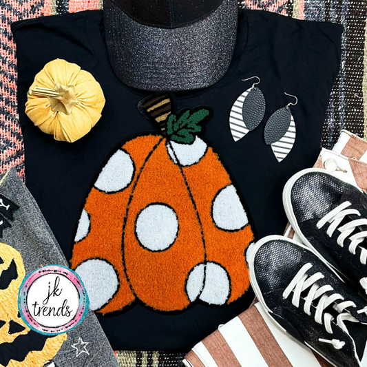 Polka Dot Pumpkin Chenille Crewneck Sweatshirt