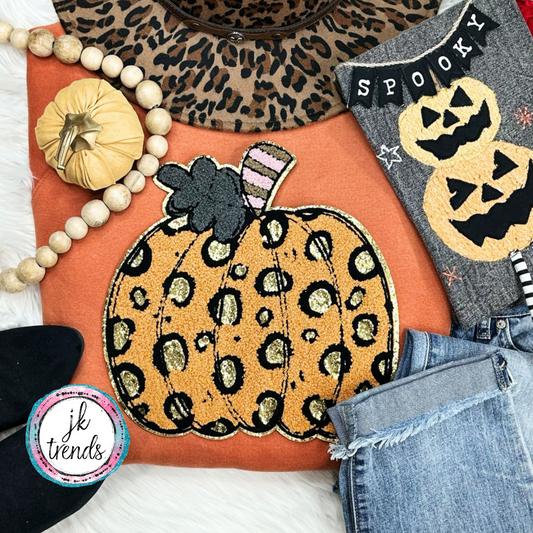 Leopard Pumpkin Chenille Crewneck Sweatshirt