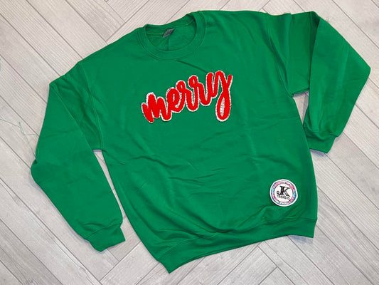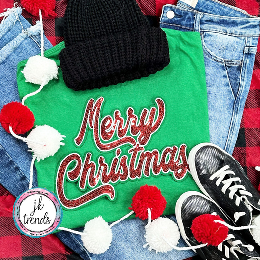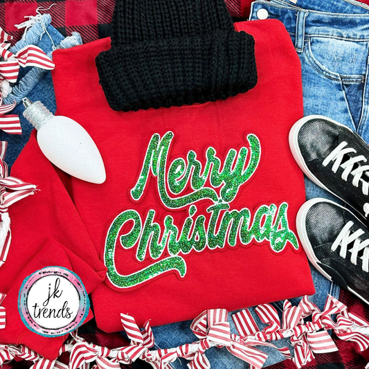 Merry Christmas Green Sequin Crewneck Sweatshirt