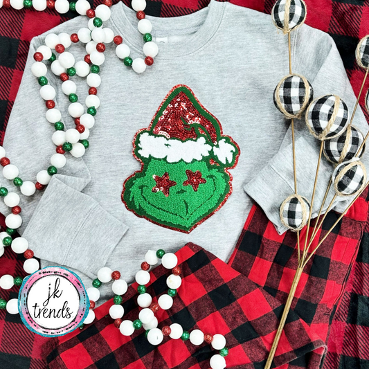 Grouchy Green Man YOUTH Chenille Crewneck Sweatshirt