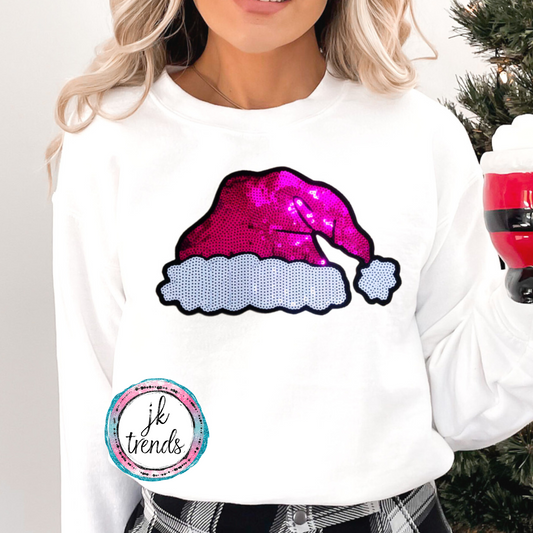 Pink Santa Hat Sequin Crewneck Sweatshirt