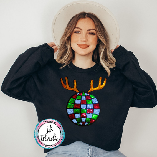 Reindeer Disco Sequin Crewneck Sweatshirt