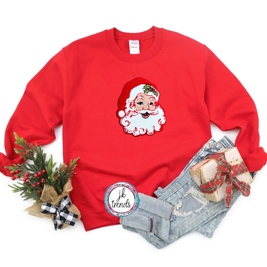 Red Santa YOUTH Chenille Crewneck Sweatshirt