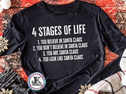 4 Stages of Life Santa Christmas Holiday! Please keep in mind of shirt color when you are ordering! This print is in white only!