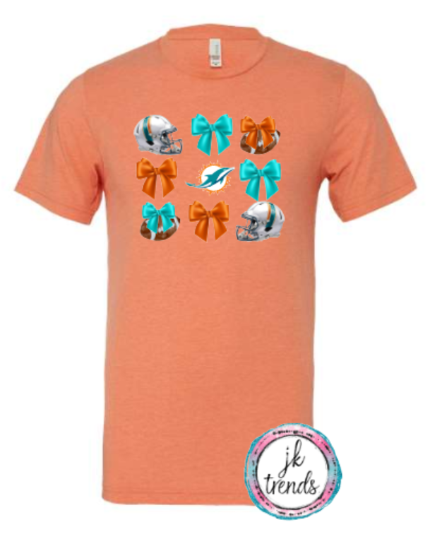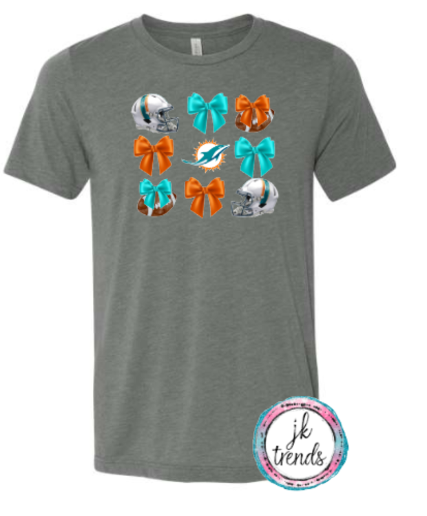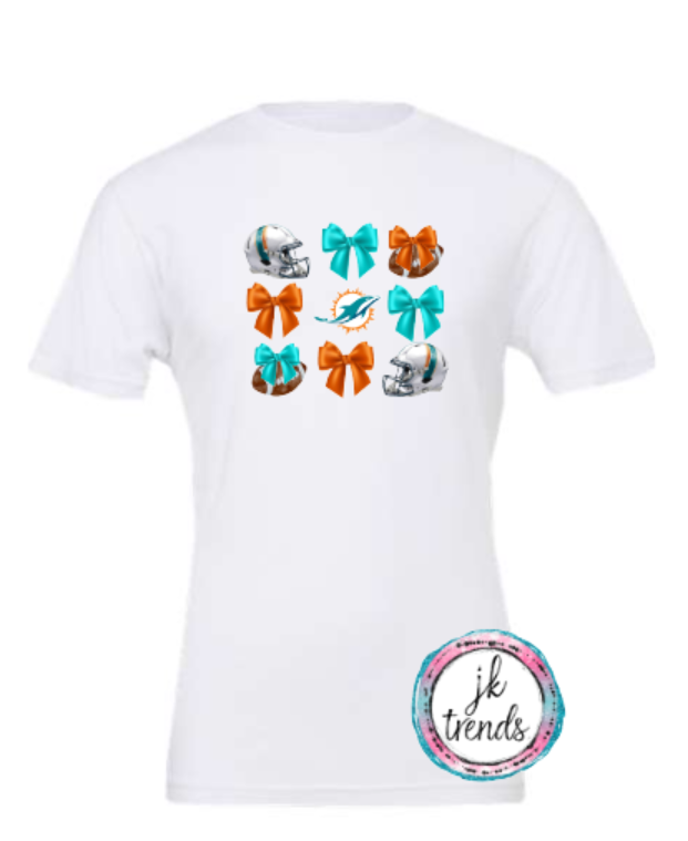 Dolphins Football Coquette Bow Bella Canvas Cotton Short Sleeve