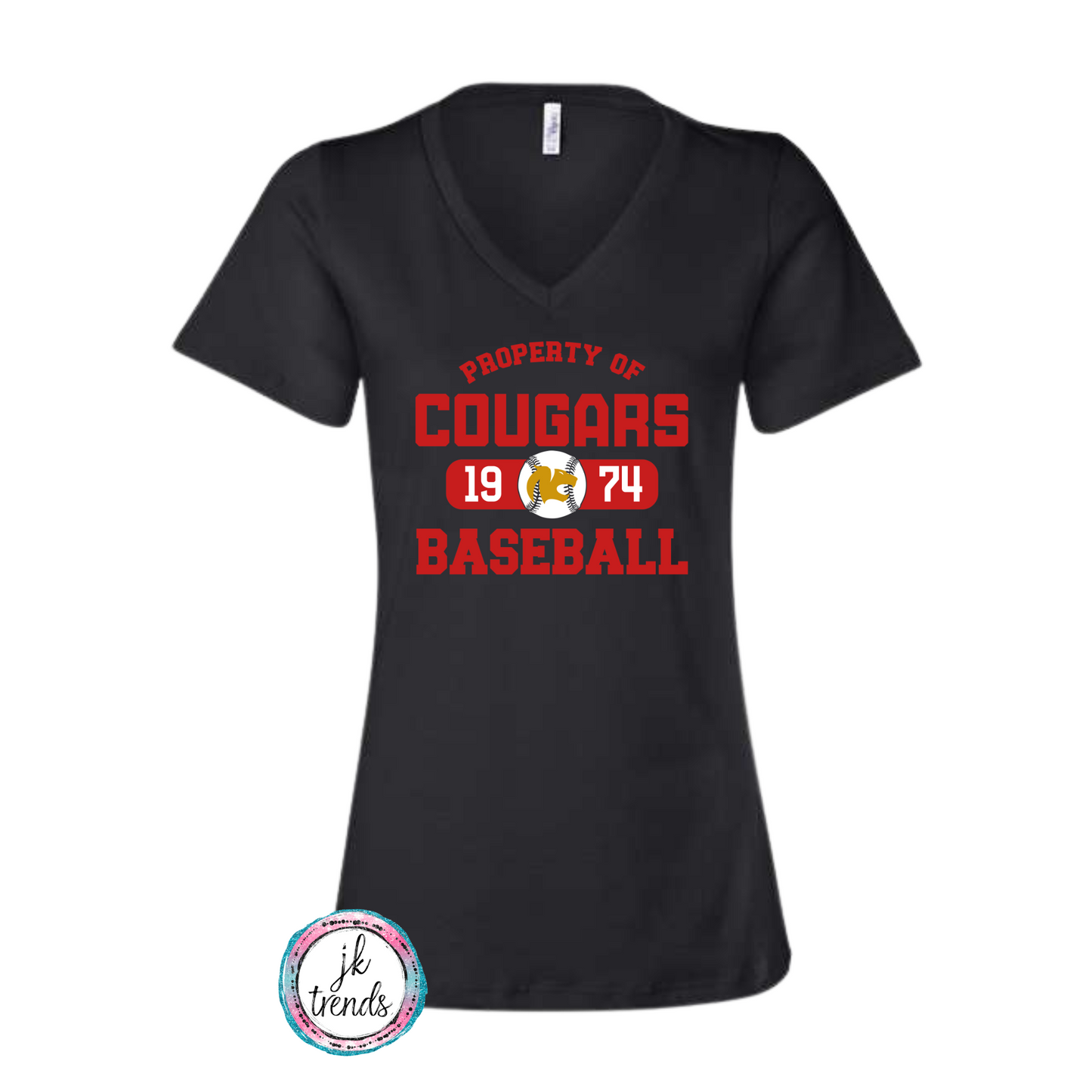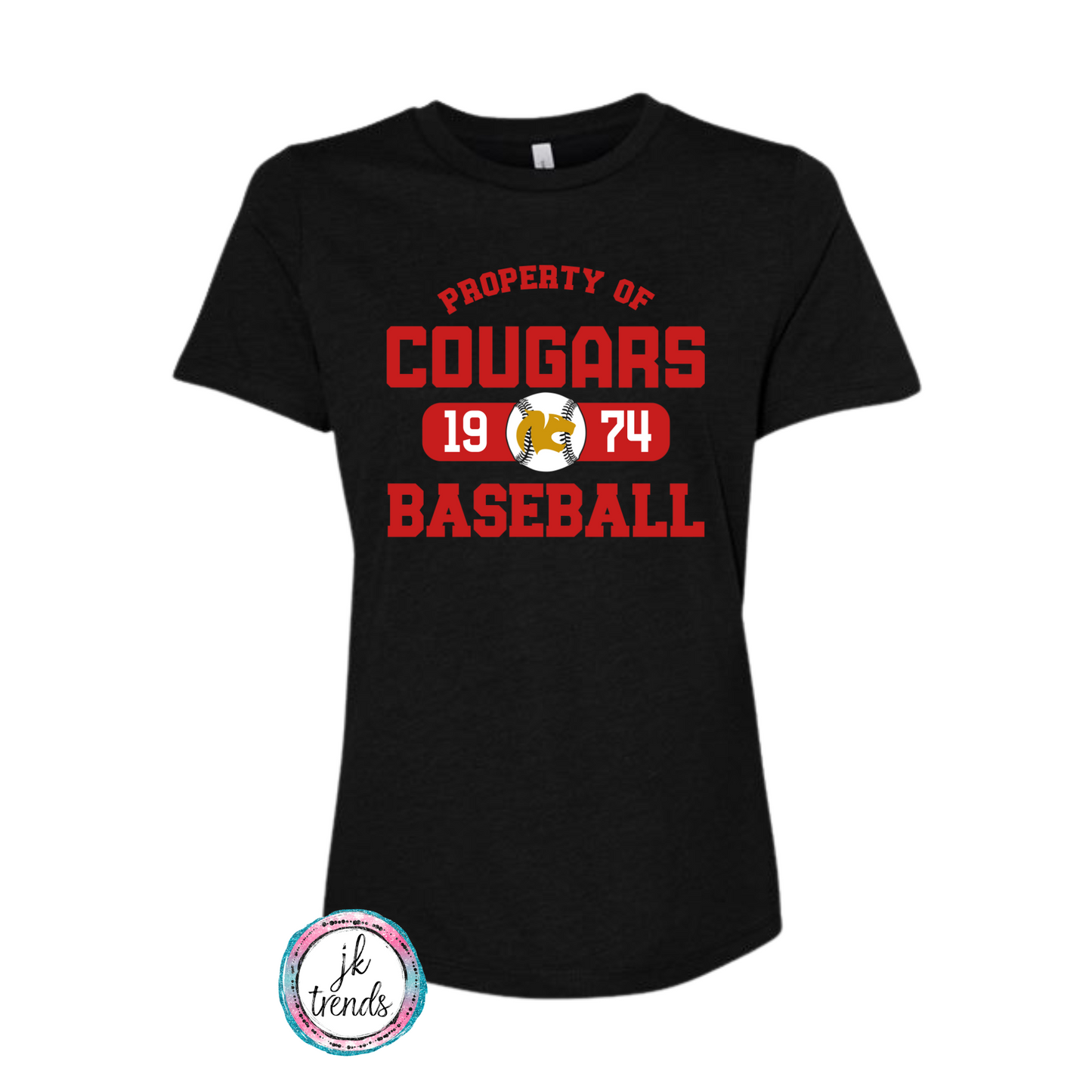 Property of Cougars Baseball Ladies Bella Canvas Relaxed