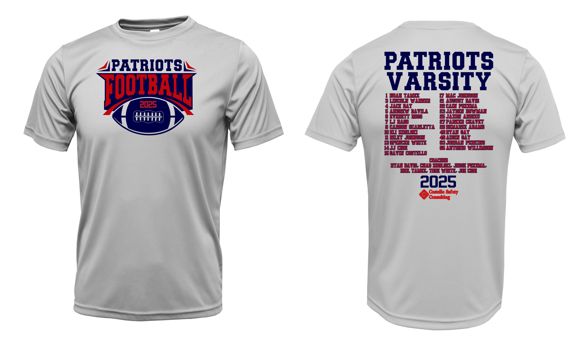 Patriots Varsity 2025 Football Team Roster Drifit Short Sleeve